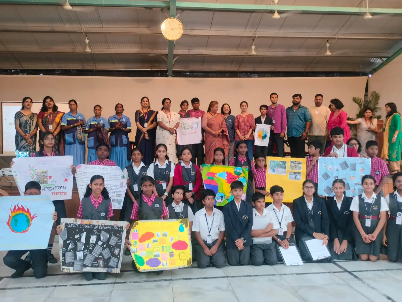 The room buzzed with excitement as students, teachers, and civic leaders came together with one shared goal: to build a greener, more climate-ready Bengaluru. Our Managing Trustee, Ms. Pushpa Subbaiah, graced the occasion with her support, while our Principal, Mrs. Supriya Johnson, delivered an inspiring message about student leadership and unveiled our bold new club logo, a symbol of the responsibility we are taking on.